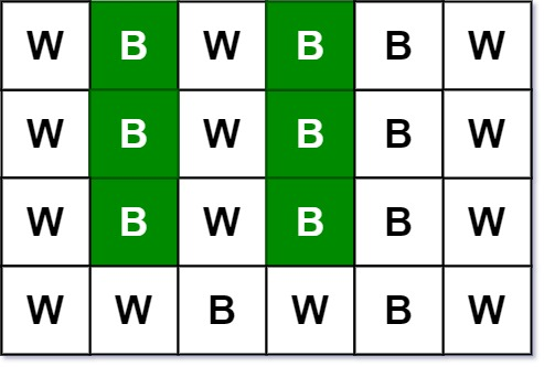 Input: picture = [["B","B","B"],["B","B","W"],["B","B","B"]]